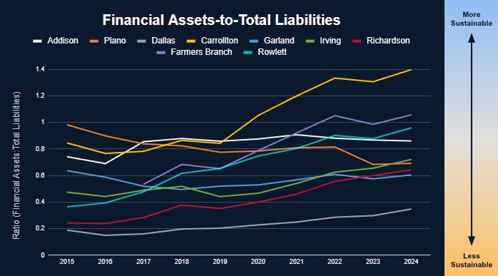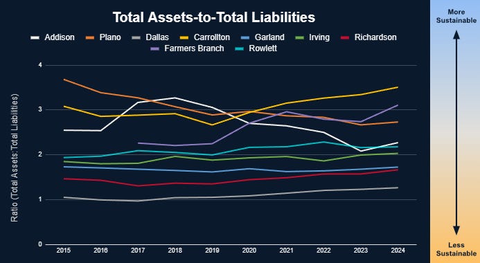 In the previous metric (FIGURE 2: Financial Assets-to-Total Liabilities), Plano went from 1st place to 6th. In this metric (FIGURE 3: Total Assets-to-Total Liabilities), here they went from 1st to 3rd.