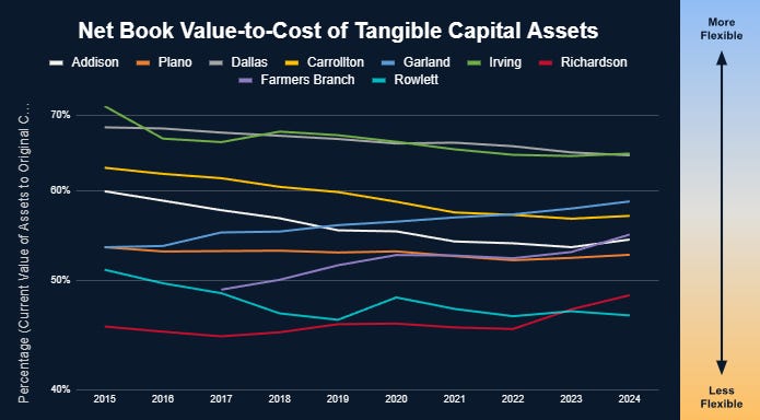 Plano’s assets are already older, so they don’t have the luxury of letting them age while paying off debt like Carrollton, Dallas, or Irving.
